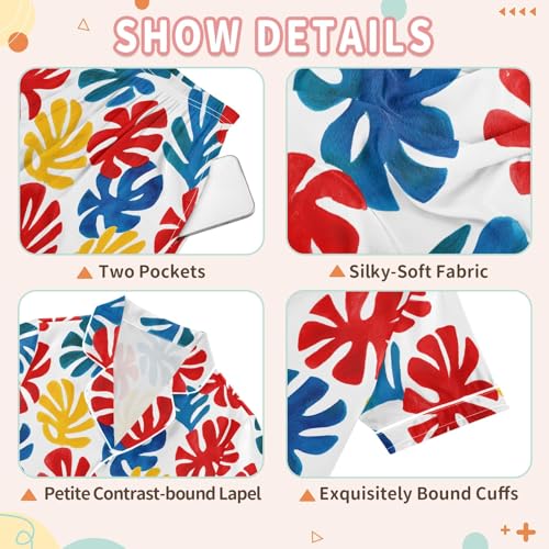 More information about Monstera Leaf Cartoon Prints Summer Satin Pajama Set, Cute Button-Down Sleepwear Pj Set for Sleep Wears