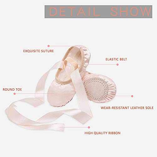 JUODVMP Girls Ballet Dance Shoes Satin Slippers Gymnastics Flats Split Sole with Ribbon,Model TJBLDM 7