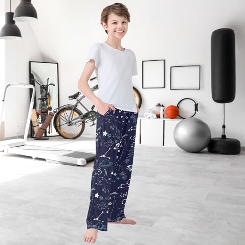 Boy's Pj Pants Space Dinosaur Hand Draw Lounge Bottoms Elastic Kids Sweatpants Joggers with Pockets Size 6-14 4
