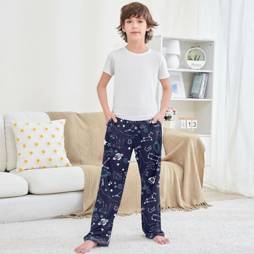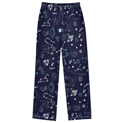 Boy's Pj Pants Space Dinosaur Hand Draw Lounge Bottoms Elastic Kids Sweatpants Joggers with Pockets Size 6-14