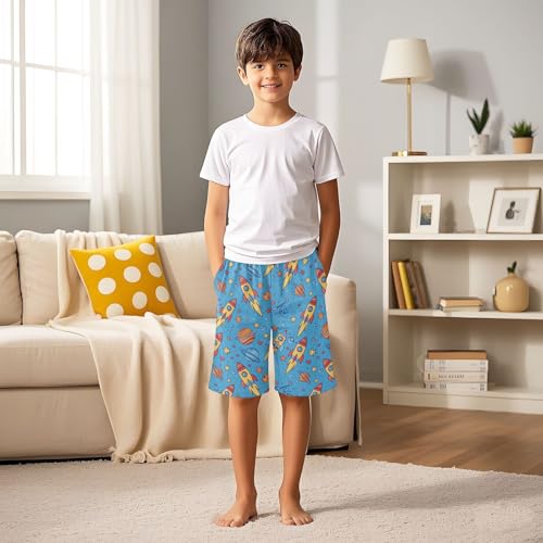 ALAZA Cartoon Solar System Planet Space Blue Pajama Shorts Sleep Shorts Pant Lounge Pajama Bottoms Elastic Waist with Pockets 1