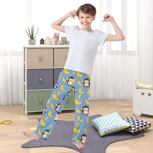 Pajama Bottoms, Monkeys and Bananas on Blue Pajamas Pant Lounge Wear Sleep Long Pants Casual Sleepwear Pjs