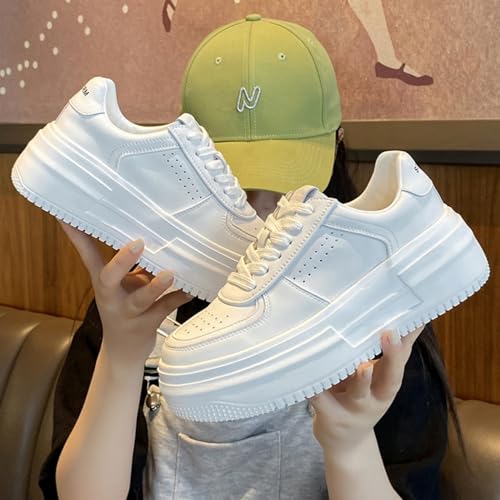 Amtopiyo Women's Thick Sole White Sneakers Casual Lace-Up Sports Shoes