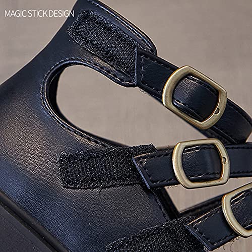 Girls Mary Jane Leather Princess Dress Shoes Ballet Flats for School Wedding Party with Hook and Loop White and Black Gladiator Schools Shoes 5