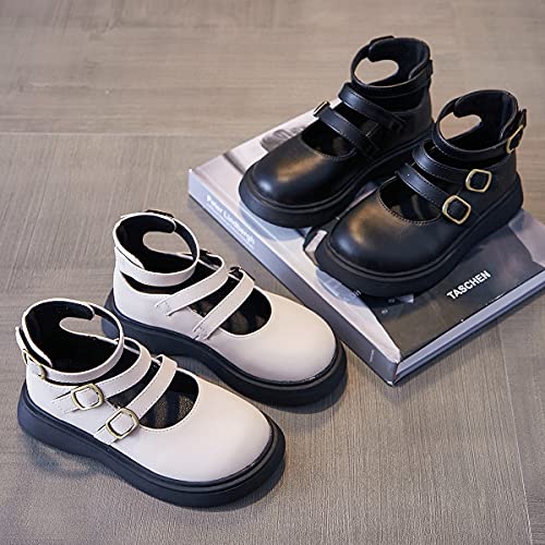 Girls Mary Jane Leather Princess Dress Shoes Ballet Flats for School Wedding Party with Hook and Loop White and Black Gladiator Schools Shoes 4