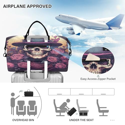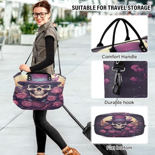 Skull Pattern Purple Rose Travel Duffel Bags Gym Bag Weekender Handbag with Toiletry Bag for Women Girls Men