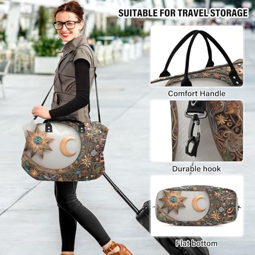 Large Travel Duffel Bag, Moon and Star Sports Tote Gym Bag, Shoulder Weekender Overnight Bag for Women Men, Carry On Luggage with Toiletry Bags