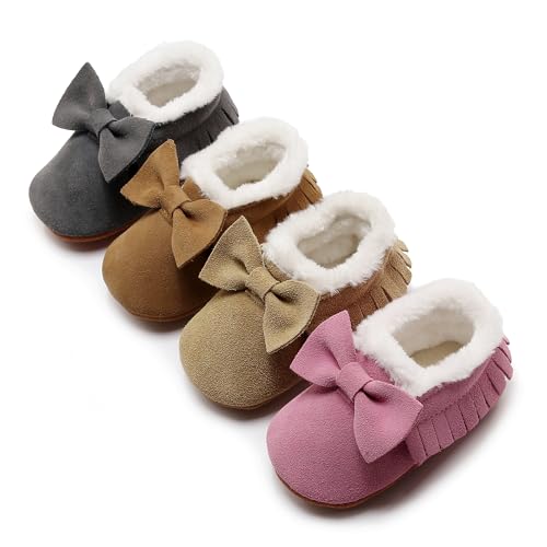 HONGTEYA Baby Moccasins with Fur Fleece Rubber Soles toasty Snow Boots Leather Baby Shoes for Boys Girls…