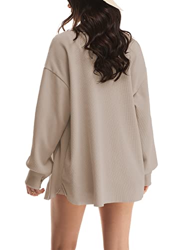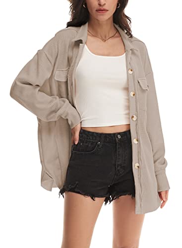 Nirovien Womens Waffle Knit Shacket Oversized Button Down Shirt Jacket Lightweight Spring Outfits Clothes