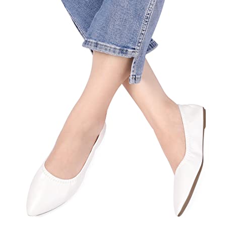 Sole material: Faux LeatherOuter material: Faux LeatherClosure type: Pull-OnComfortable & Portable: These ballet flat are soft, durable and flexible. They are also foldable and portable that you can put them in your small travelling bags. If you like travelling and wearing flats, these flats shoes are your indispensable companions.High-quality Materials: The faux leather of these ballet flat shoes is not easy to fade, with pleasant inner lining and soft sole. These walking shoes use the top-grade material to provide with the most comfortable experience to your feet.Elastic Belt Design: The elastic belt of shoe mouth can adjust the tightness to fit different foot types. The lining has breathability and moisture-absorption, keeping your feet dry.Non-Slip Sole: The exquisite striped anti-skid design not only retains the beauty of the ballet shoes, but also gives them practical functions. You can wear it at home or walking, shopping, traveling, dancing.Many Colors Choices: Ballet flats for women are comfortable and simple, many nice macaroon colors for your choices, great for wearing with skinny leg pants, shorts, jeans or dresses,Suitable for all commuting and casual occasions.