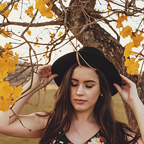 DRESHOW Women vintage Felt Fedora Wide Brim Floppy with Belt Buckle Panama Hat