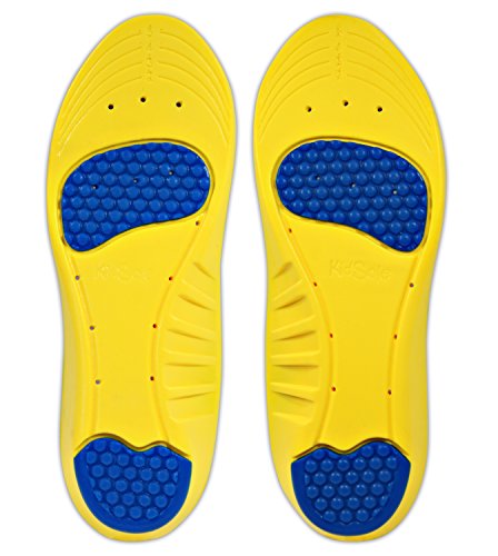 Brand: KidSoleColor: Blue, YellowProduct Benefits: This product alleviates pain associated with foot inflamation in active children.Use for: FootMaterial: Memory FoamOur Sport Comfort insoles are created from excellent memory foam to ensure maximum comfort and arch support. They fit great in cleats and tennis shoes.Our Memory Foam insoles are all designed with a contoured heel cup and arch support for growing feet.Our Sport Comfort model is ideal for athletic and active wear and comes with Micro-Bead Technology for maximum traction while in use.Our insoles all come with custom guided cutting lines to help create the excellent fit for a vide variety of sizes.For sizing--please refer to the chart in the photos. Our memory foam youth insoles will fit any USA youth size from 1-6.5 Perfect for everyday use. High quality materials and excellent craftsmanship ensure long-lasting durability.