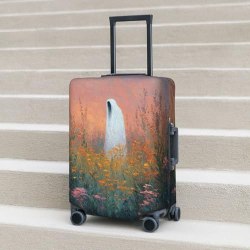 White Ghostly Figure Wildflowers Elastic Travel Luggage Covers Dustproof Scratch-Resistant Suitcase Protector Fit 22-24 Inch 7