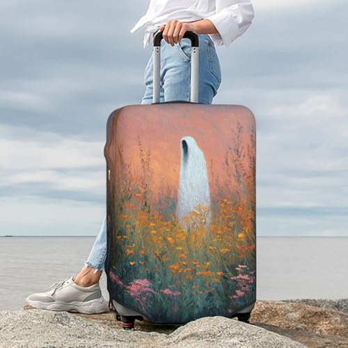sought-after ! White Ghostly Figure Wildflowers Elastic Travel Luggage Covers Dustproof Scratch-Resistant Suitcase Protector Fit 22-24 Inch