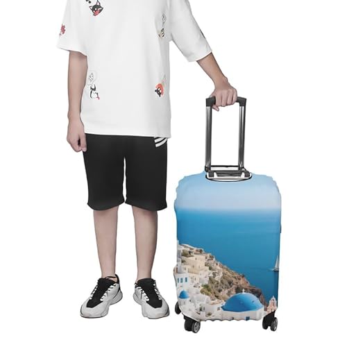sought-after ! Santorini Greek Island Sea View Elastic Luggage Cover Suitcase Protector for 19-32 Inch Suitcases | Universal Stretchable Travel Bag Cover | Anti-Scratch, Washable with Zipper Closure S