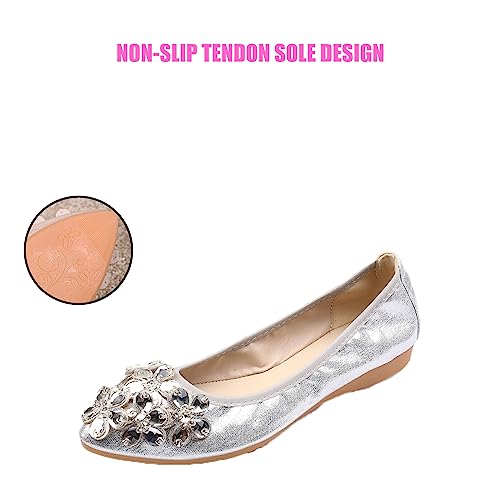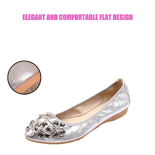 Traveltopp Women's Fashion Rhinestone Ballet Flats Foldable gentle Pointed Toe Slip-on Loafers Work Walking Bridal Dress Shoes
