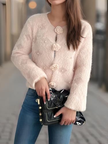 Women's Mohair Sweater – Fuzzy Mohair Cardigan Pearl tender Chunky Button-Up Fuzzy Sweater for Women