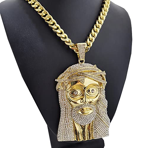 Why Choose Iced Gold Plated Simulated Diamond Jumbo Size Jesus Head Pendant & 10mm 18" 20" 24" 30" Cuban Chain Hip Hop Rapper Style Jewelry Fashion Necklace Gift, halloween?