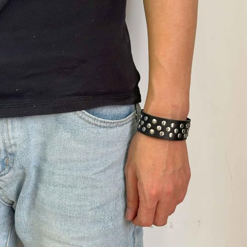Why Choose Punk Rock Rivet Studded Wristband Pu Leather Arm Cuff Bracelet?