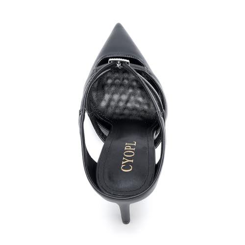 Sole material: RubberOuter material: Faux LeatherClosure type: Pull-OnWater resistance level: Not Water ResistantFeatures: The pointed design makes the legs look more slender, the rhinestone buckle embellishes the elegant and exquisite appearance, and there are no straps for easy on and off, which is a formal and snug style that can seamlessly transition from the office to evening activitiesClassic Heel: The heel is about 3 inches, with a moderate height that visually elongates the hind leg line. Stiletto heels showcase your elegance and create a sexy female silhouetteComfortable Insole: The latex insole is soft and elastic, with massage particles to relax the soles of the feet. Wearing it for a long time and attending parties and events will not make you feel tiredSlip-Resistant Sole: The durable, slip-resistant sole provides excellent traction, making these pumps suitable for various indoor and outdoor settings.Occasion: Suitable for parties, streets, dinners, cocktails, graduations, clubs, weddings, or formal occasions, and can be paired with dresses, skirts, shorts, and jeans