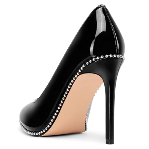 Castamere Beaded Pumps for Women Pointed Toe Stiletto Heels Slip on Pumps Casual Dress Patent Leather 3.9 Inches Heels 4