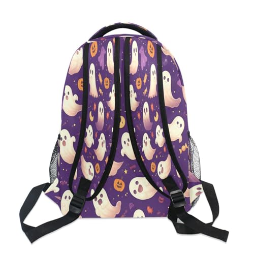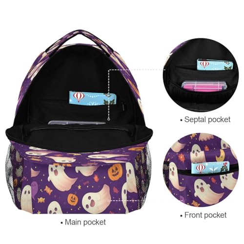 Dussdil Ghost Halloween Pumpkin Purple Kids Backpack School Backpacks for Boys Girls 16 IN Book Back Pack Bag Casual Travel Daypack with Adjustable Shoulder Strap Zipper