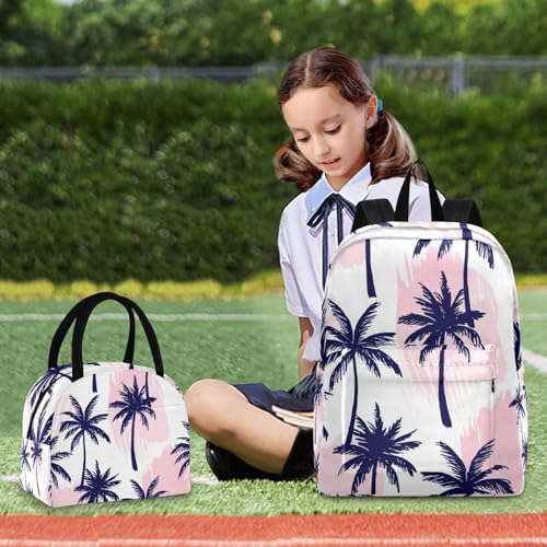 School Bags, Navy Blue Palm Trees Cooler Bag Waterproof, Travel Backpacks for Big Kids and Youth