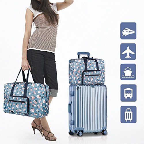 【WELL-DESIGNED】Unique and practical floral patterns, We love to stand out It's personalized and sleek【DURABLE】finest waterproof polyester fabric,soft nylon lining, smooth zippers.【FOLDABLE】Unfolded Size: (L)18.7 x (W)12.6 x (H)7.5 inch. Folded Size:(L)9.6 x (W)5.7 x (H)1.2 inch.Weight: 1.2 lb.Greatly save space after folding, Easily carry with your flight after expansion.【Elaborate Details】This travel bag comes with a comfortable cotton handle.The sleeve on the side allows bag to side over the handle of your suitcase.This travel bag has no strap.【Multipurpose】A Good travel duffle bag for Women.Could also be used as a weekend bag, overnight bag, airplane duffle ,carry on luggage,hospital bags for labor and delivery,Just-In Case bag as well.