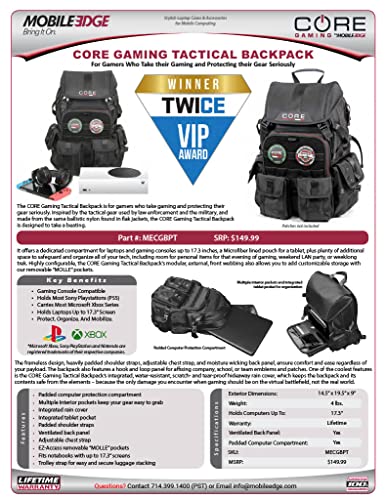 sought-after ! CORE Gaming Tactical Laptop Backpack 17.3" (17.3 inches; MECGBT; Mobile Edge) - Black