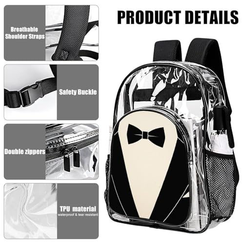 Travel Laptop Backpacks Bow Tie Tuxedo (2) Large Bookbags See Through Bag Transparent Backpack Waterproof Clear Bag