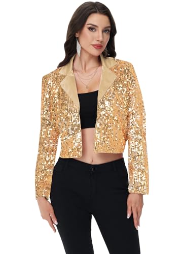 • Features: Sequin Blazer for Women, Long Sleeve, v neck, open front, sequined fabric, contrast lapel collar, cropped