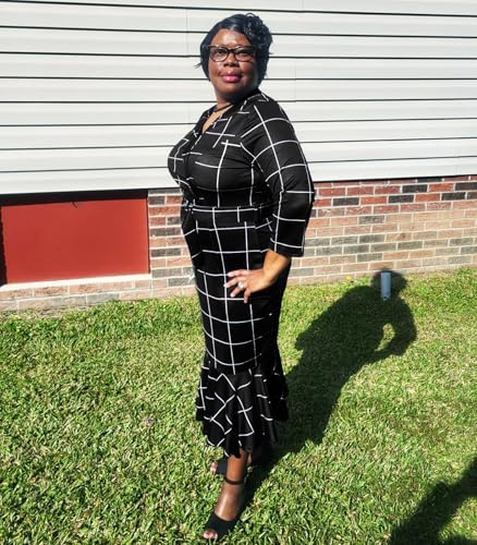 ZonJie Women Work Business Plaid Dress Casual Button Long Sleeve MIdi Dress Classy Bodycon Wedding Guest Dresses