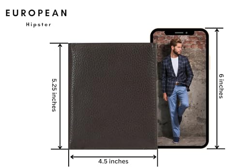 Bullz Genuine Leather Large European Hipster Bifold Credit Card Id Men's Wallet Slim Tall Passcase Billfold (Brown) 6