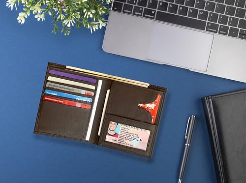 Bullz Genuine Leather Large European Hipster Bifold Credit Card Id Men's Wallet Slim Tall Passcase Billfold (Brown) 7