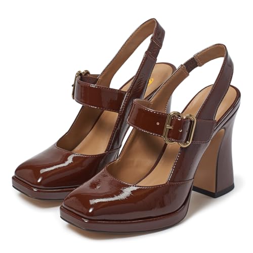 FYS Women's Platform Square Toe Pumps Chunky Block High Heel Mary Janes Backless Slingback Sexy Dressy Party Shoes Size 4-16 US