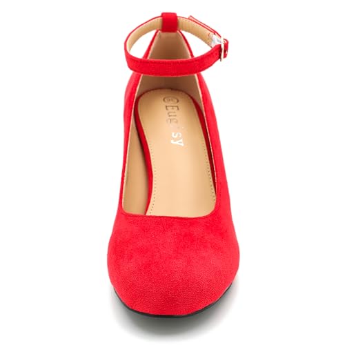 Women's Ankle Strap Closed Round Toe Pumps Low Chunky Block Heels Comfort Wedding Party Dress Evening Shoes 6