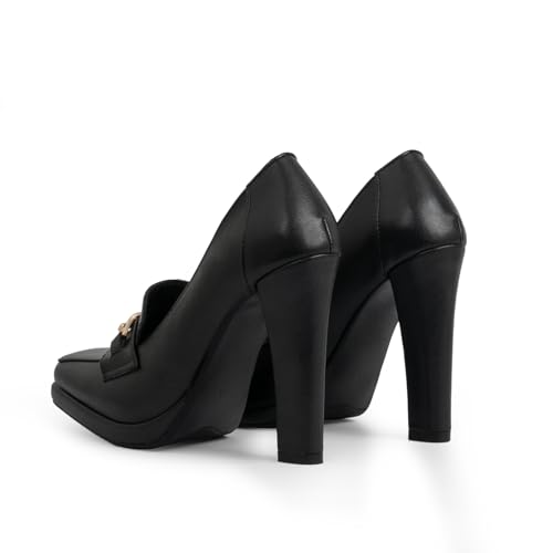 • Square Toe Design: The current square toe shape offers ample room for your toes, enhancing comfort while giving these high heels a distinctive and appealing look.