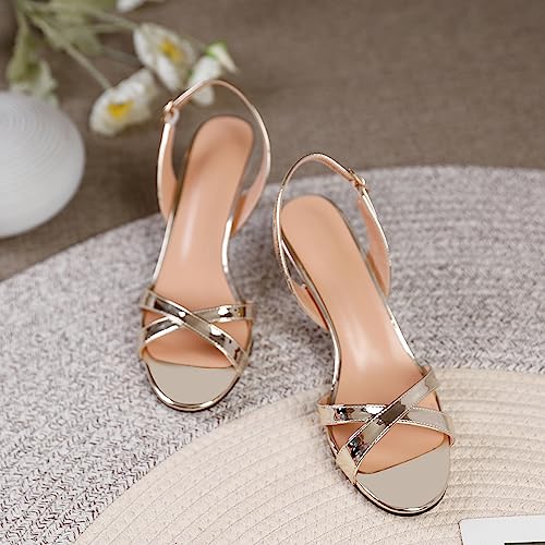 YODEKS Kitten Heels For Women Open Toe Strappy Sandals 2.5 Inch Slingback Adjustable Backstrap Shoes