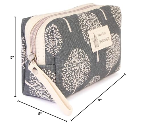 RIAH FASHION Portable Travel Clutch Cosmetic Makeup Pouch Bag - Toiletry Organizer Purse Wristlet Stripe, Floral, Plaid, Cork (Rectangle Pouch - Tree)
