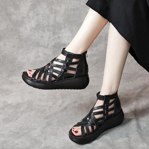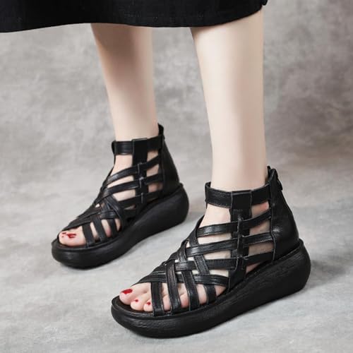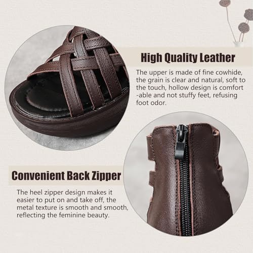 Optigard Women's High Top Leather Gladiator Wedge Sandals with Back Zipper Cut Out Breathable Platform Open Toe Roman Sandals Summer Casual Non-Slip Walking Beach Sandals