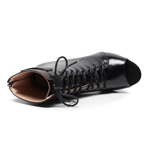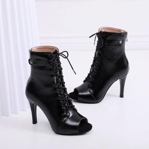 Women'S Leather Lace Up Stiletto Peep Toe Sandals Summer Sexy Fish Mouth Back Zipper High Heels Gladiator Sandals Booties For Parties Prom Dress Pumps