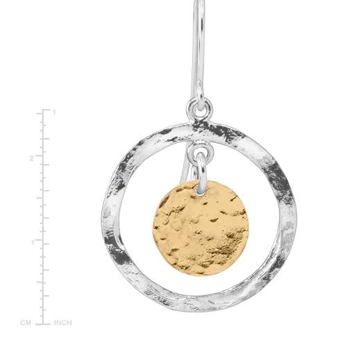 Item display length: 0.88 inchesMaterial: Sterling SilverMetal type: Sterling SilverBack Finding: French WireEarring design: DropMetal weight: 3.2 gThese earrings are designed by artisan Silvi Rozenfeler in Israel. Wear these earrings as a reminder of a sunny coastline! Gold-plated sterling silver discs boast a hammered design, surrounded by rings of wavy sterling silver. They're remarkable to wear year round. Pieces come with .925 sterling silver quality stamps as symbols of guaranteed product quality.Sterling silver with yellow gold-platingFish hooksEarrings measure 7/8 by 7/8 inches and feature fish hook back findings..925 sterling silver quality stamp