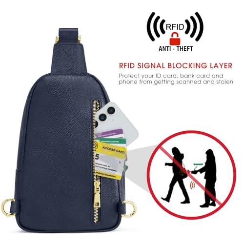 Kattee Sling Bag for Women, Leather Fanny Packs Crossbody Purse, Small Chest Bag with RFID Blocking, Blue