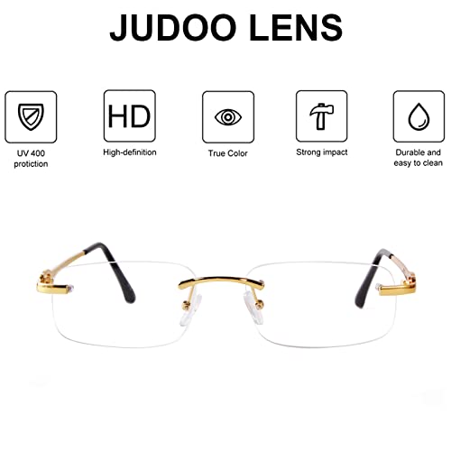 Brief content visible, double tap to read full content. Full content visible, double tap to read brief content. Bundles with this item Previous page Judoo Fashion Clear Rimless Rectangle Sunglasses -7% $25.99 List: $27.98 Judoo Fashion Clear Rimless Rectangle Sunglasses -7% $25.99 List: $27.98 Judoo Fashion Blue Light Y2k Glasses for Women Men -2% $25.99 Next page See all bundles☀excellent Material: The trendy rimless sunglasses are made of PC lens, which is environmental & skin-friendly, firm hinge design to prevent the loosening of screws, hollow-out design of temples make the sunglasses more fashion, soft nose pad can bring you a stress-free wearing experience.☀UV400 Protection: The lens can block 100% of both UVA and UVB radiation. UV400 rated sunglasses is essential to protecting your eyes against long term UV damage and keeping your eyes healthy when you go out.☀Tiny Narrow Design: Small sunglasses design, it is so light that is very convenient to carry. Temple frame is made of metal, which is corrosion resistant, strong, stability and great shape. It’s suitable for shopping, party, traveling, you'll look chic and stunning in the sunglasses.☀Product Dimension: Lens width: 52mm(2.05in), lens height: 31mm(1.22in), nose bridge: 20mm(0.79in), temple length: 139mm(5.47in), frame length:138mm(5.43in).☀Customer Service: In case any accident of the shipping or unexpected damage happened to these rimless glasses. Please contact us without any hesitation, we will reply within 24 hours to solve the problem until satisfaction. Perfect for everyday use. High quality materials and excellent craftsmanship ensure long-lasting durability.