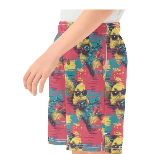 Boys Athletic Shorts with Pockets Cool Chicken Running Basketball Shorts for Youth Elastic Waist Size 7-8