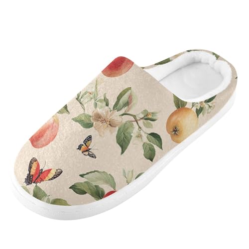 JUNZAN Fresh Apples Fruit Beige Womens Cotton Slippers Warm Memory Foam Travel Slippers for Outdoor Birthday Presents 6-7 5