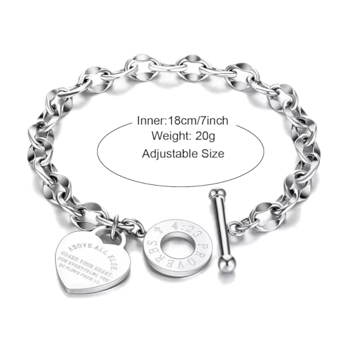 Harlorki Personalized Stainless Steel Cuban Chain Love Heart Pendant Charm Bracelet Wrist Cuff Birthday Gift Fashion Jewelry for Men Women 5