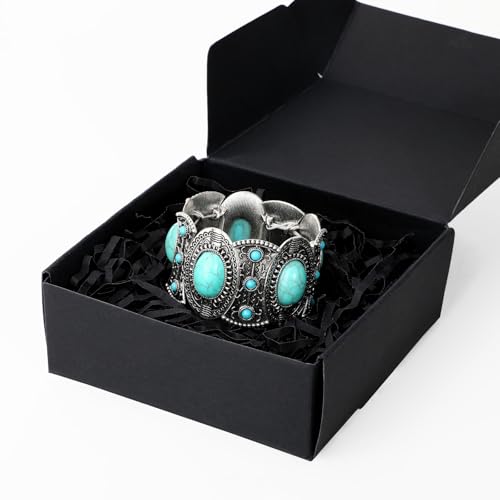 Turquoise Bracelet for Women Boho Bracelets Vintage Western Cowgirl Bangle Bracelet Stretch Turquoise Jewelry
