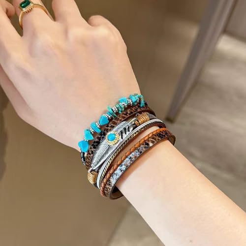 Long tiantian Western Bracelets for Women Boho Leather Wrap Bracelets Turquoise Beaded Bracelet Western Jewelry Country Concert Outfits