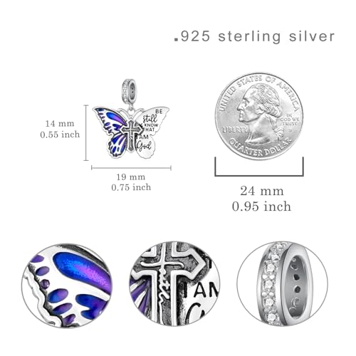Be Still and Know That I Am God Charm for Bracelet 925 Sterling Silver Butterfly Faith Christian Charm Jewelry Gifts for Women